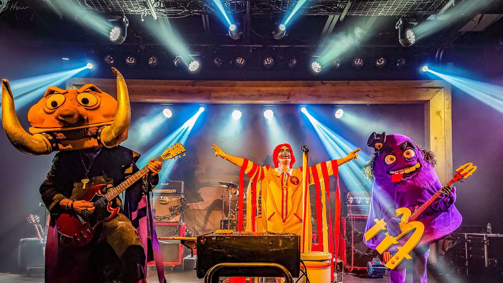 The story of GWAR is carved across the history of this hopeless planet, but GWAR themselves are not of this world…Their story begins far past Uranus, in the deepest reaches of space, where the beings known as GWAR were warriors in the Scumdogs of the Universe, an elite fighting force in the army of the Master of All Reality. But GWAR proved too reckless and powerful, and after a series of tragic but hilarious blunders, they were banished to the furthest reaches of the galaxy, with orders to conquer an insignificant backwater prehistoric mudball known as the planet Earth. Once here, GWAR, the original Ancient Aliens, shaped the face of the globe, wiping out the dinosaurs, and mating with apes to create the human race. Having accidentally given rise to all human history, the Master of All Reality froze them in Antarctic ice where they could do no more harm. It was there they were discovered by a shady entrepreneur known as Sleazy P Martini, who sat the band down in front of professional wrestling, late-night horror movies, heavy metal music, and a steady diet of crack cocaine until GWAR became the cultural force they are today!